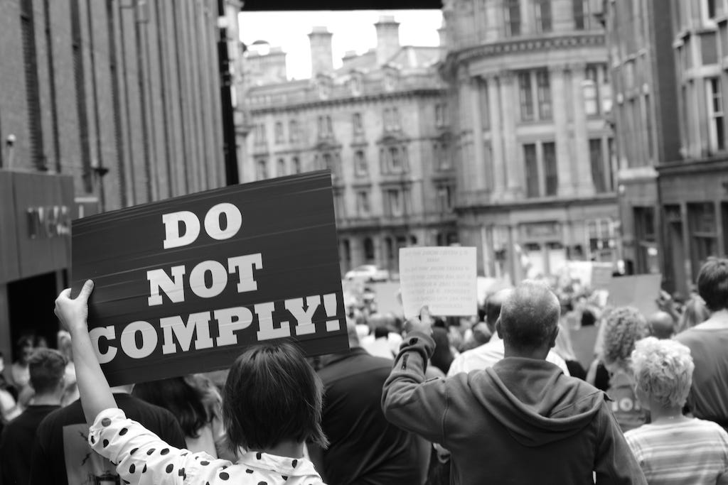 We are in the process of dumping lots of despotic rulers and their endless rules. There is an exploitative system run by criminals that seizes your assets under a false pretext, and now funds a lot of genocidal activity. In the past you would have followed every procedure and become anxious by going “out of process”. Now you have to make a personal judgement about the legitimacy of those rules. It’s OK to be “unruly” in this war.