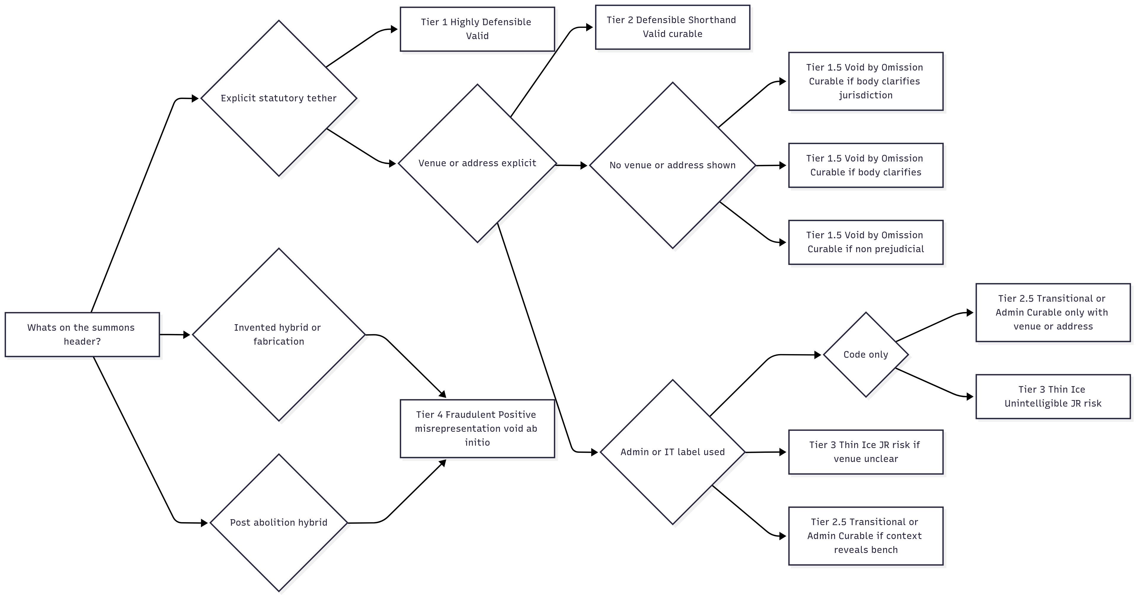 Tier 1 (Highly Defensible): The warrant is evident on the face of the document — explicit statutory tether or lawful shorthand. Challenge unlikely to succeed (JR or appeal); treated as valid unless a separate procedural breach (e.g. no address).