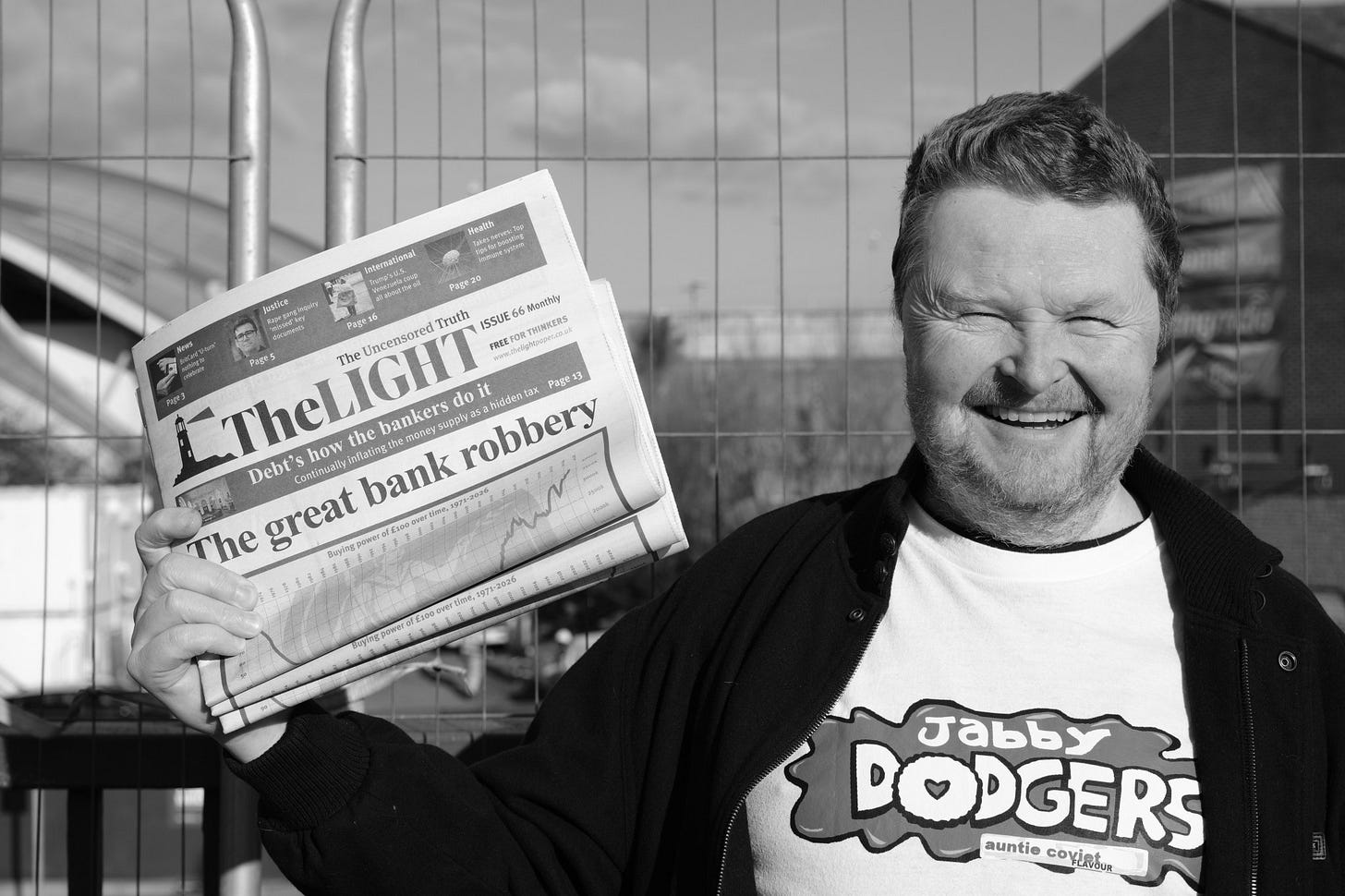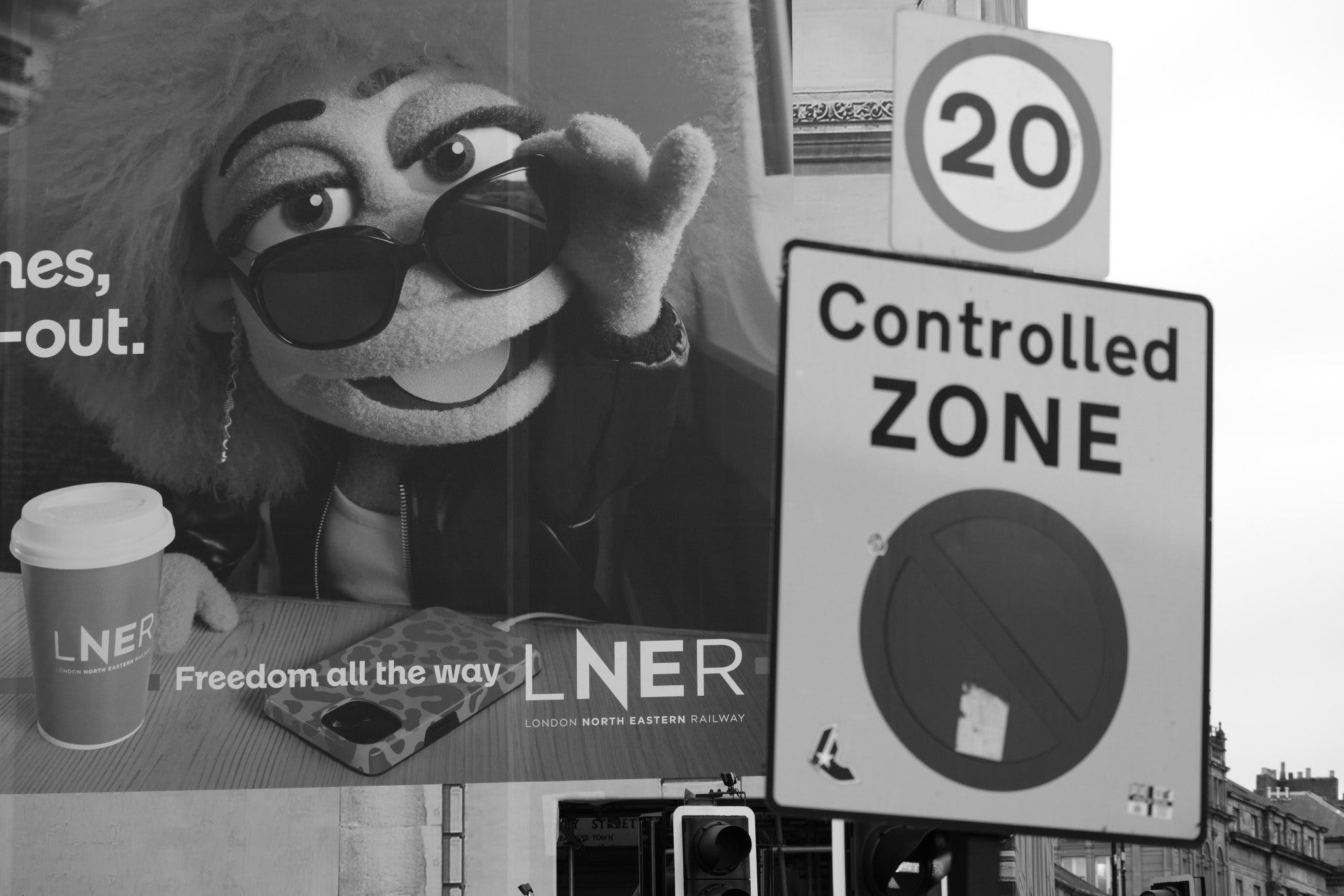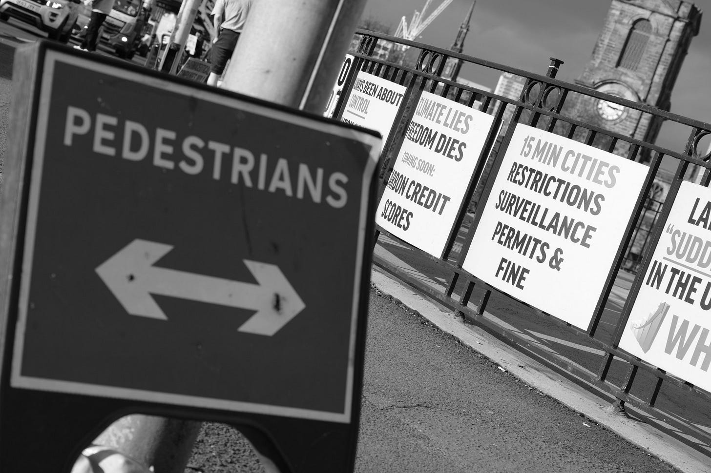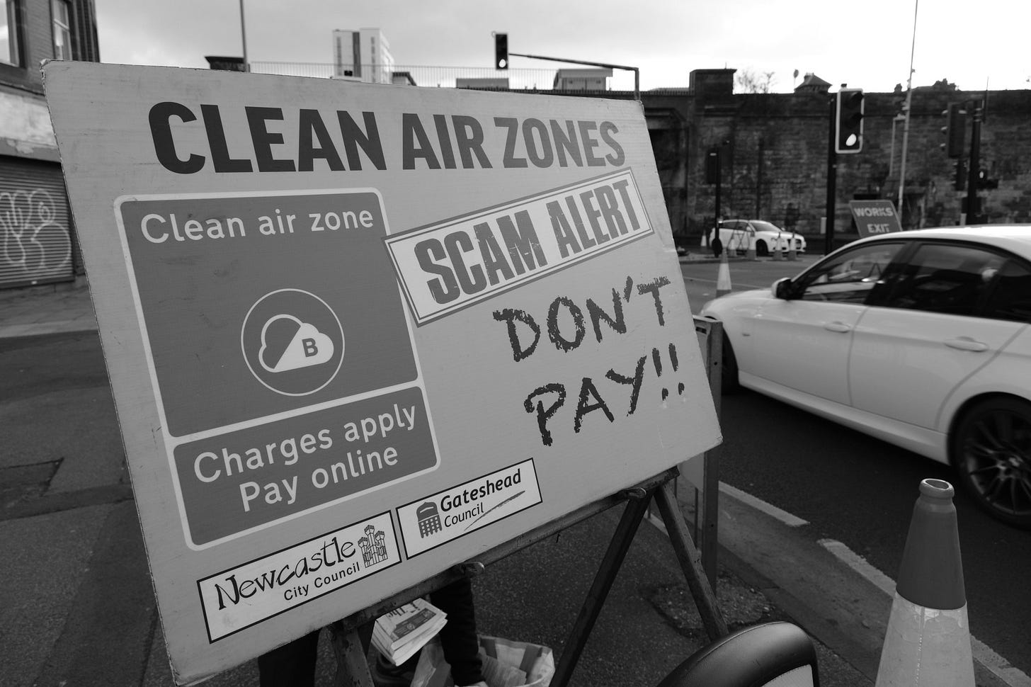 I calculated that I could just about afford the return train fare to Newcastle yesterday and still pay my rent while staying within my overdraft limit, so I decided to photograph one of the “Rebels on Roundabouts” events. People opposed to a bio-medical digital tyranny taking over society stand at the roadside with placards, hand out newspapers and flyers, and motorists who support the cause hoot their horns in solidarity. It is a different category of protest from a march or a rally outside a public building. I enjoy capturing these events as a record of contemporary history.