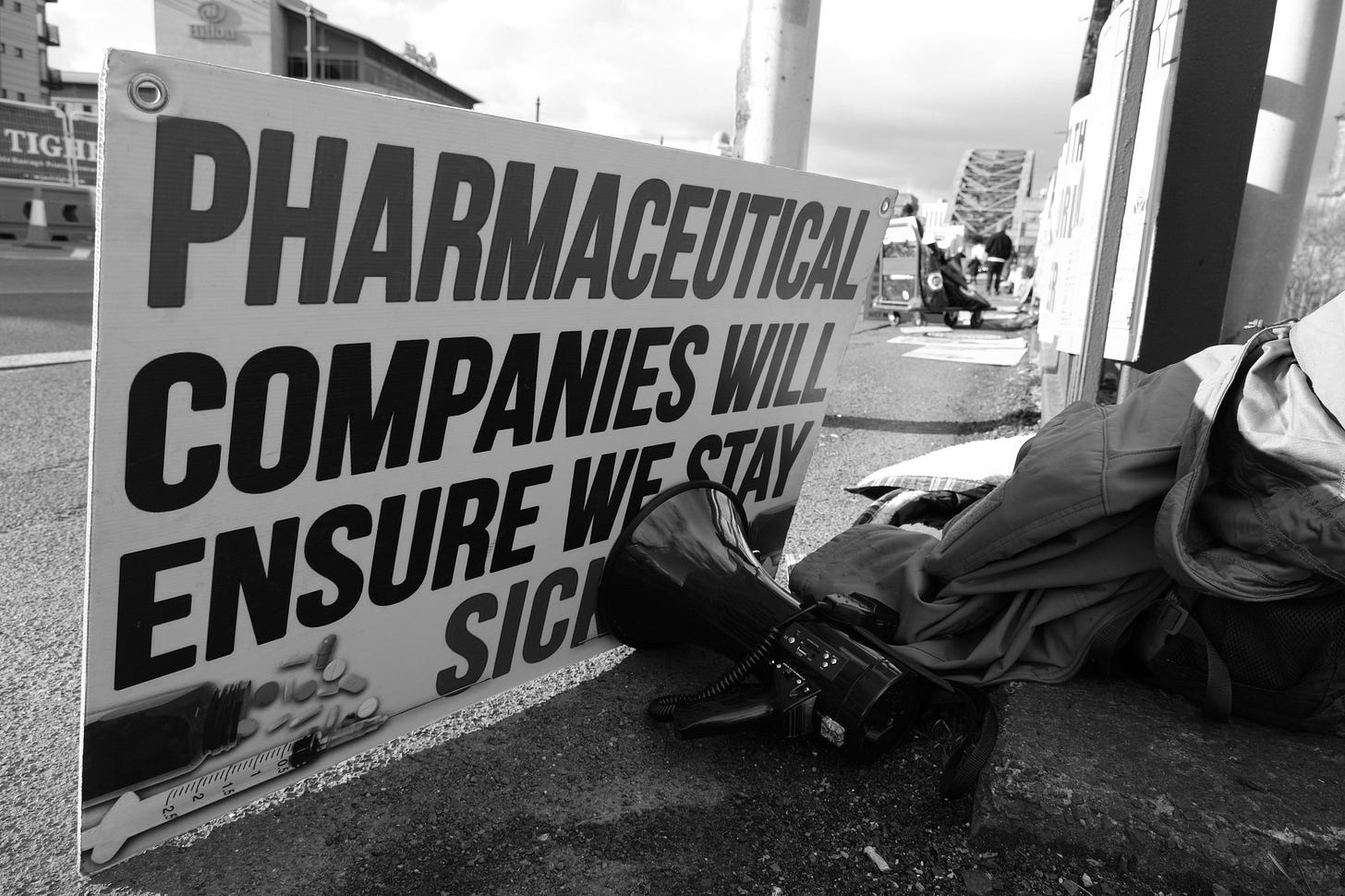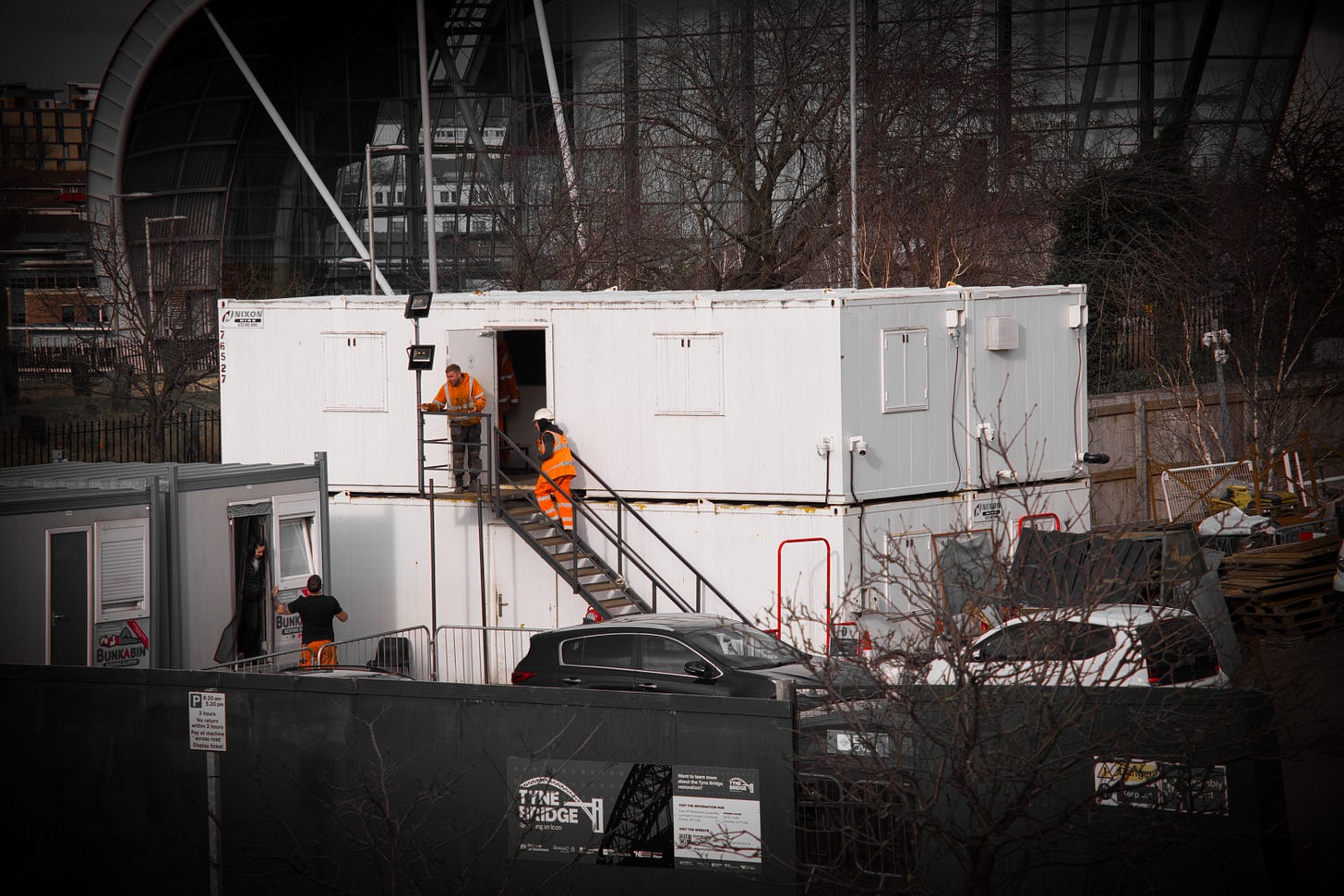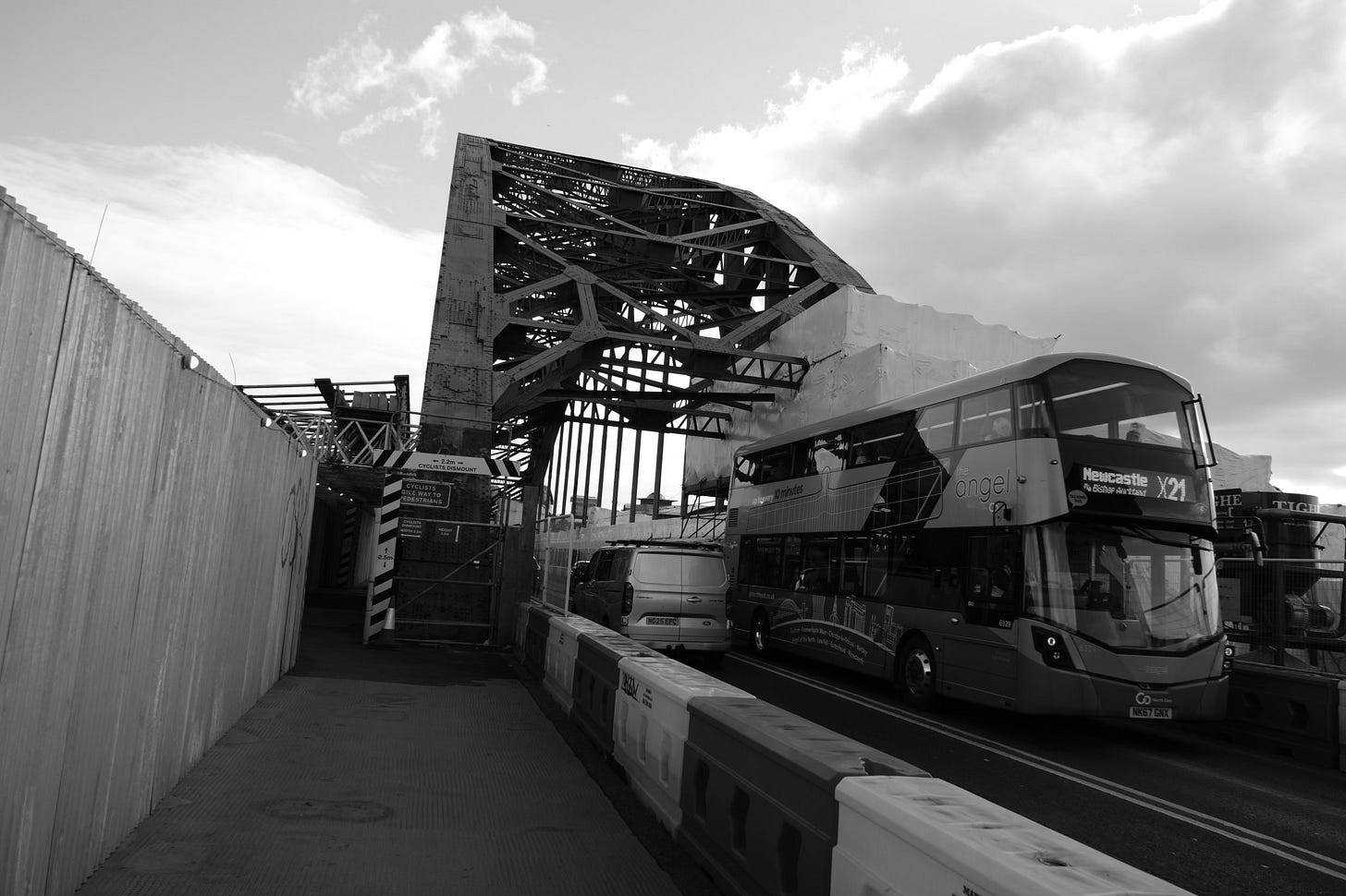 Orange men good: hi-vis dissent on a Newcastle bridge
