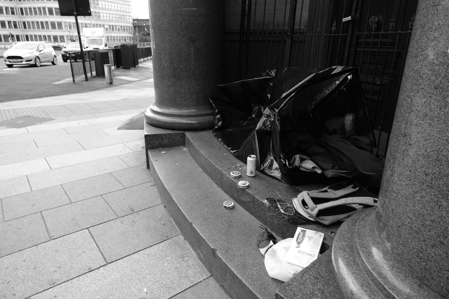 Homeless on the streets — and a van with more “orange men” stopped to talk as I photographed it. That is the real story. It isn’t about the protestors.